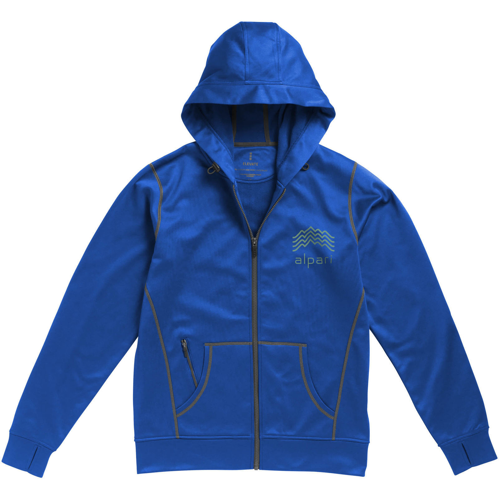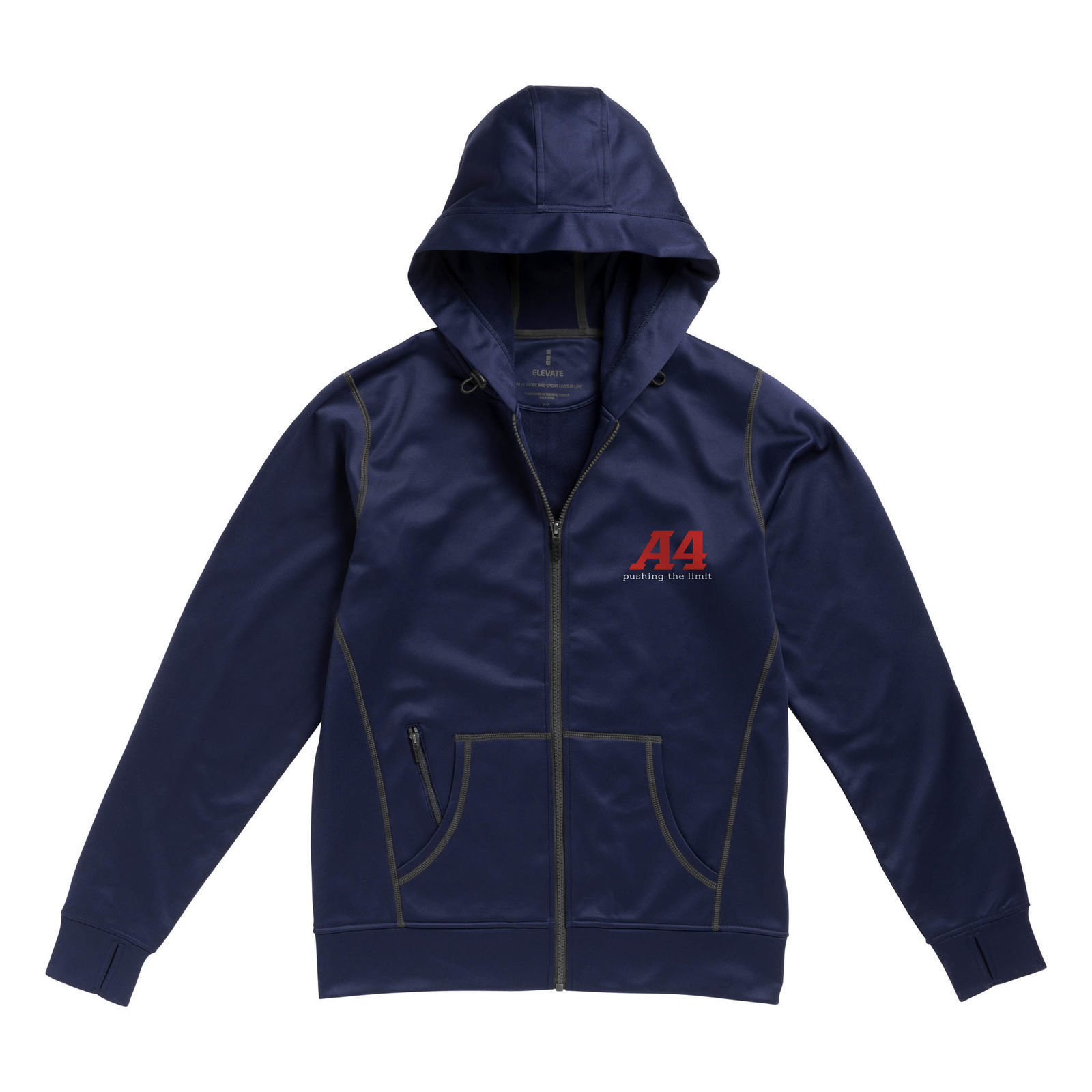 Capuche réglable avec cordon élastique et stoppeurs.Trous pour les pouces.Poche kangourou.Coutures plates contrastées à l'avant et à l'arrière.Cool Fit