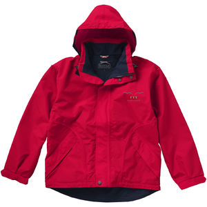 Imperméable 1000 mm.Bande cousue façonnée.Capuche enroulable.Cordon élastique avec stoppers dans la capuche et le bas.Poignets réglables avec rabat et fermeture velcro.Poches pour les mains avec zippers.Boucle de suspension dans le col.Étiquette principale en transfert pour un meilleur confort