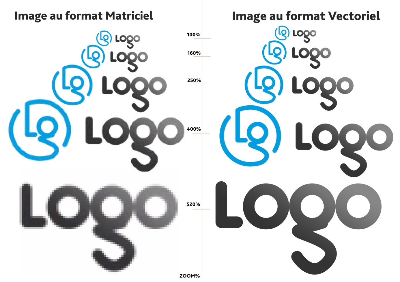 Comparaison entre un logo Matriciel et un logo Vectoriel :